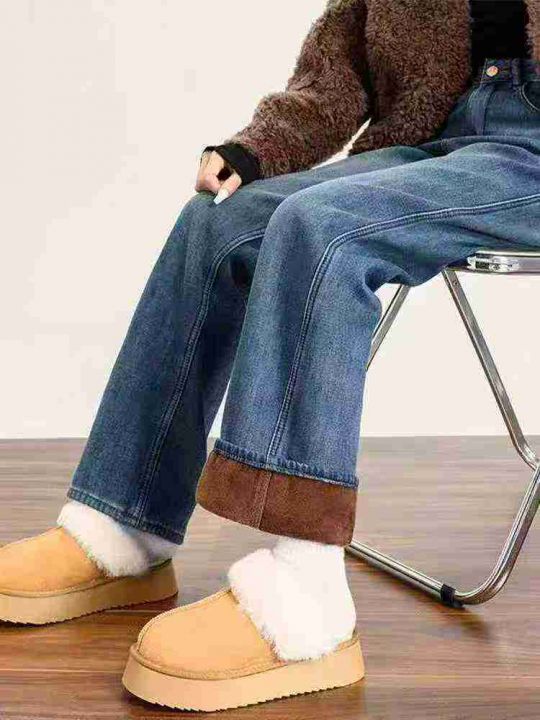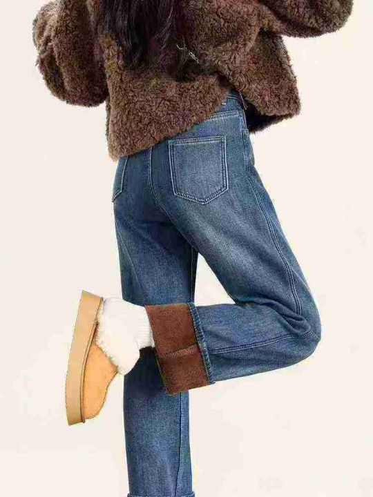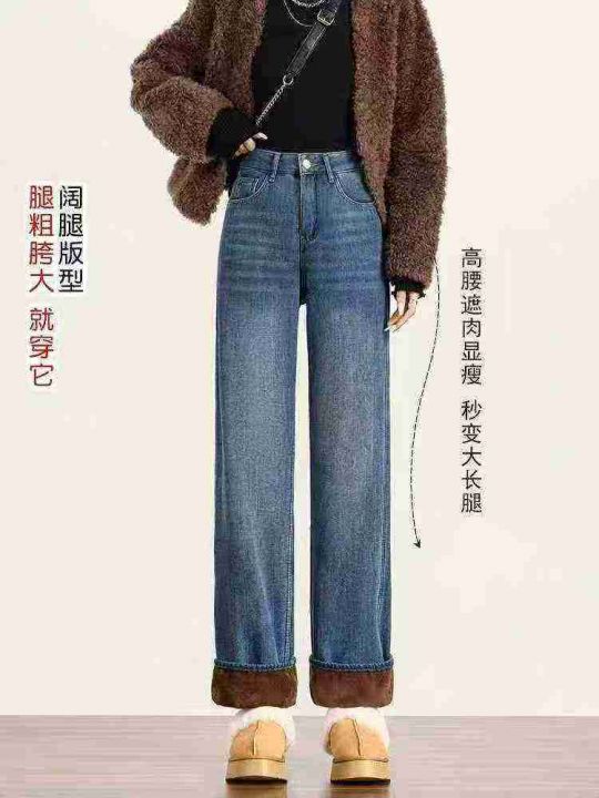 ☕️复古蓝加绒加厚直筒阔腿牛仔裤女冬季保暖高腰显瘦...