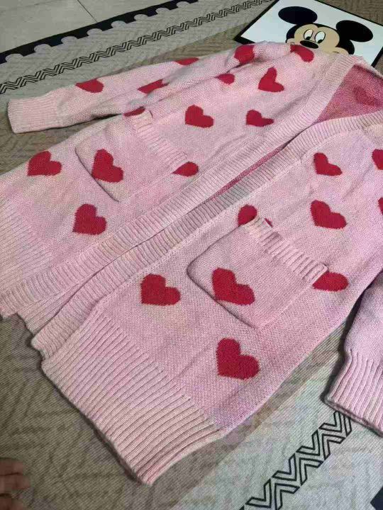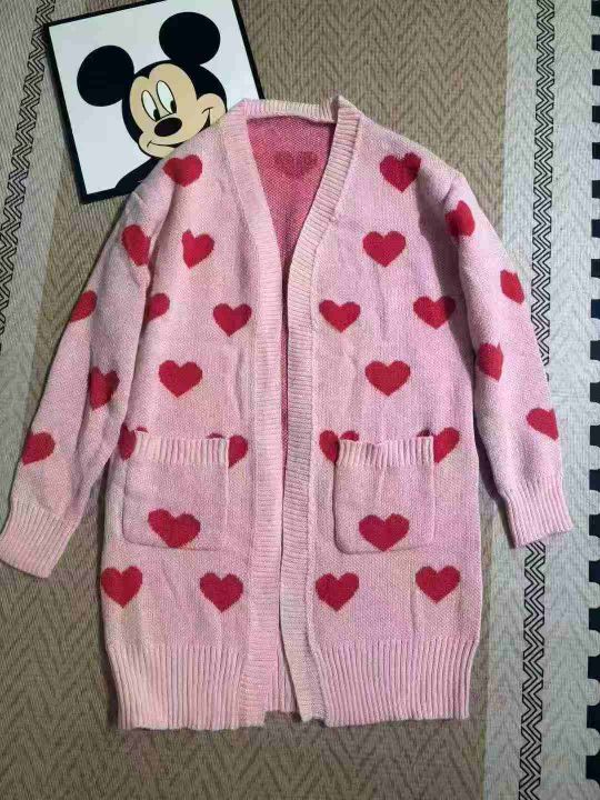 85件左右秋冬新款爱心针织开衫口袋V领中长款毛衣开衫外套,均码!独立包装!便宜清6.5 不分货