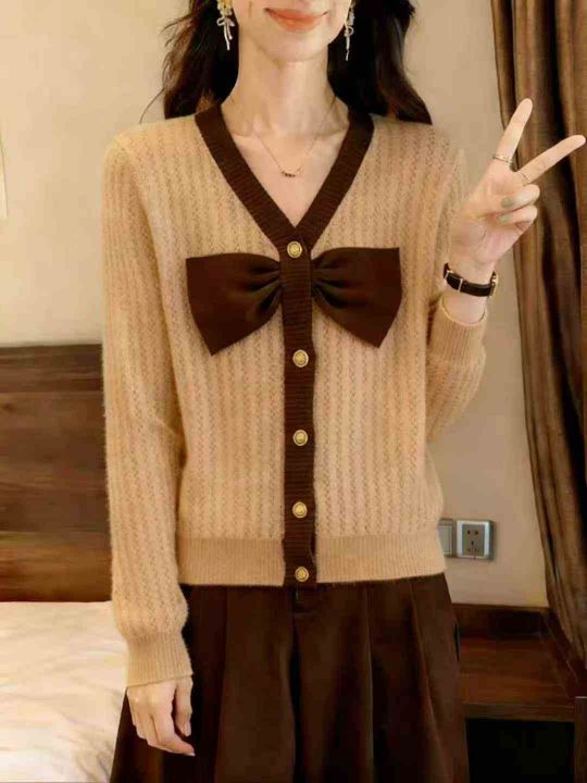 秋季新品优雅气质港风复古chic洋气蝴蝶结名媛小香风长袖针织毛衣,独立包装,均码面料柔软舒适宽松版,890件,腾仓库,全清8.9元亏本处理!分货加一!