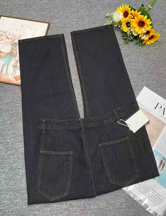 秋季新品复古女装直筒大阔腿牛仔长裤,独立包装带吊牌...