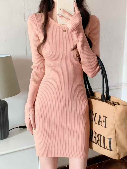 秋冬新款弹力修身显瘦坑条圆领毛衣连衣裙,独立包装,均码面料软糯舒适弹力大,276件,全清7.9元超低价秒杀!