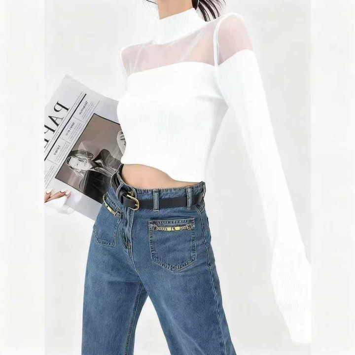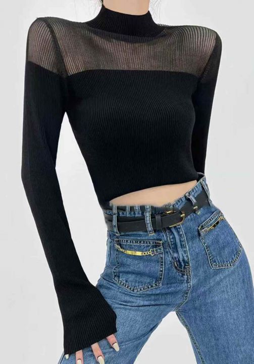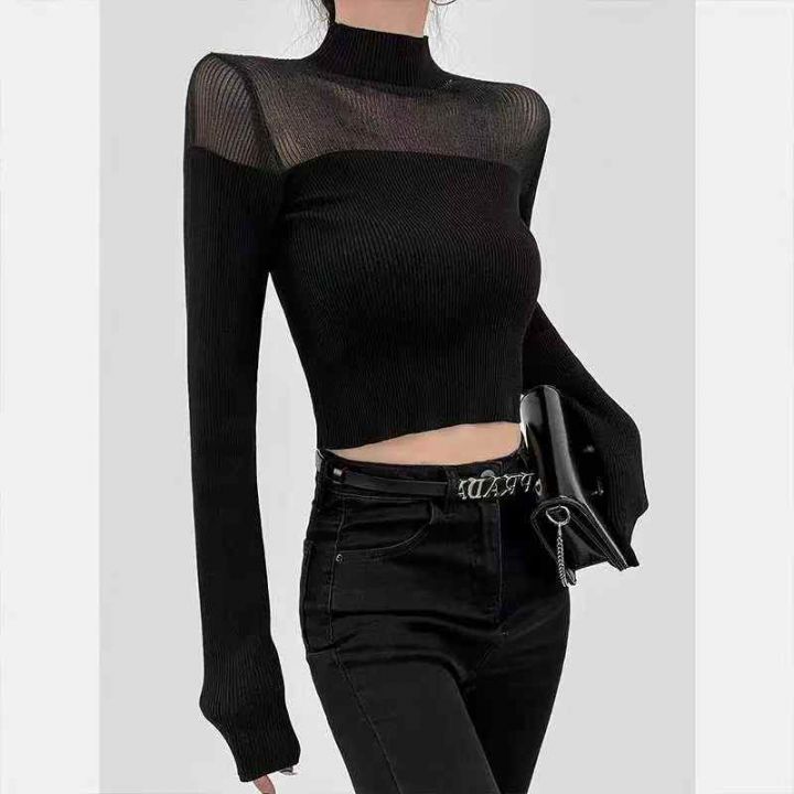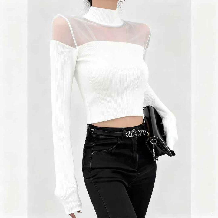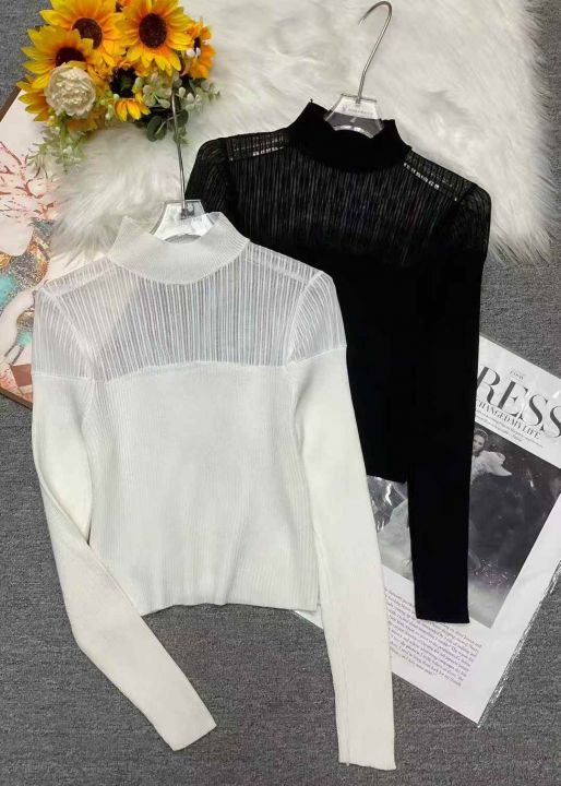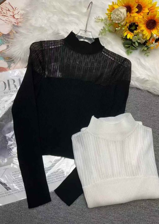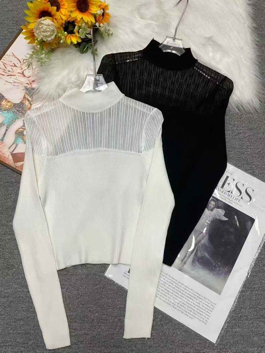 秋冬新款法式高级感网纱拼接半高领长袖内搭洋气针织打底衫,独立包装,均码面料软糯舒适弹力大,单款2色,210件,全清6.9元超低价秒杀!分货加一!