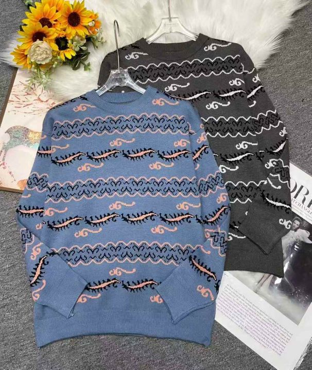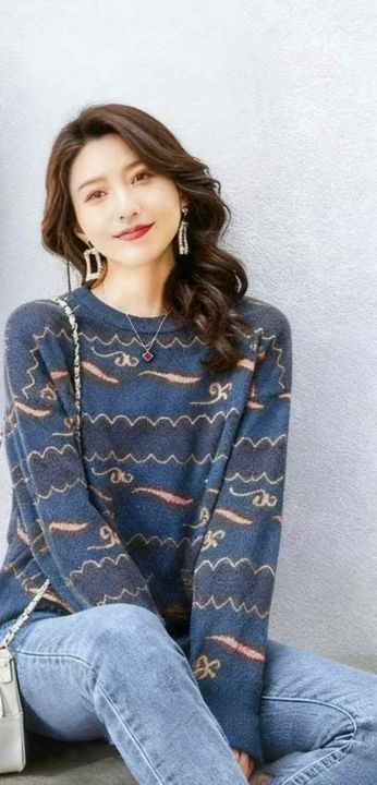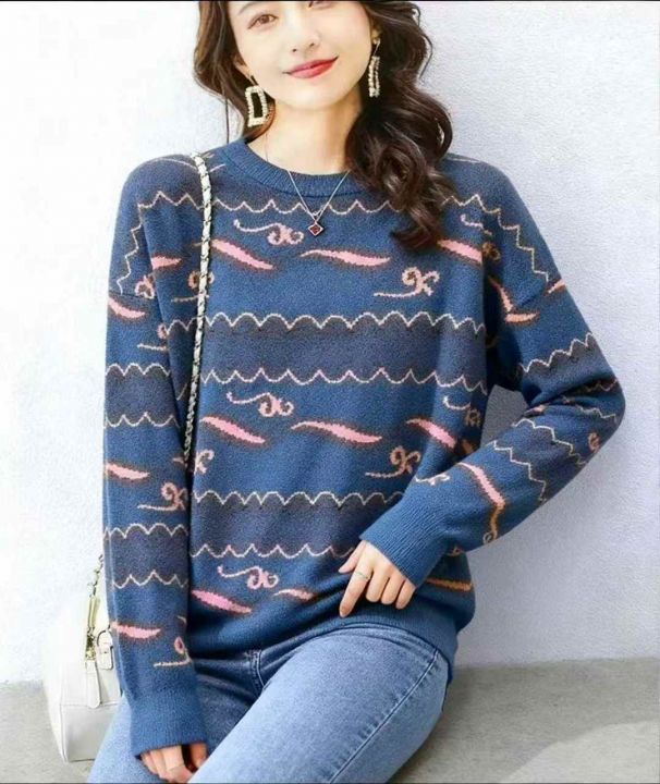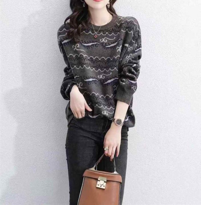 秋冬季新款圆领韩版宽松百搭提花包芯纱套头毛衣,独立...
