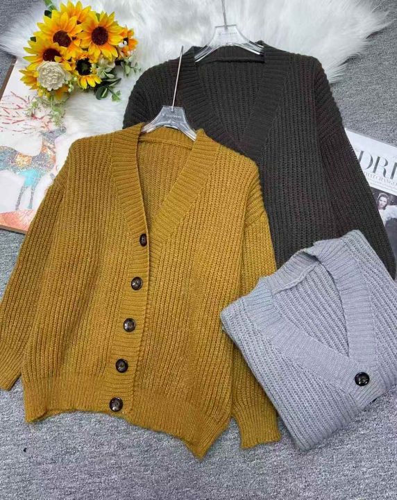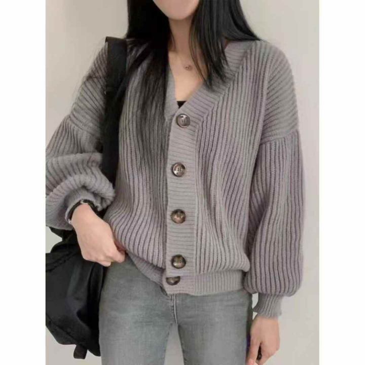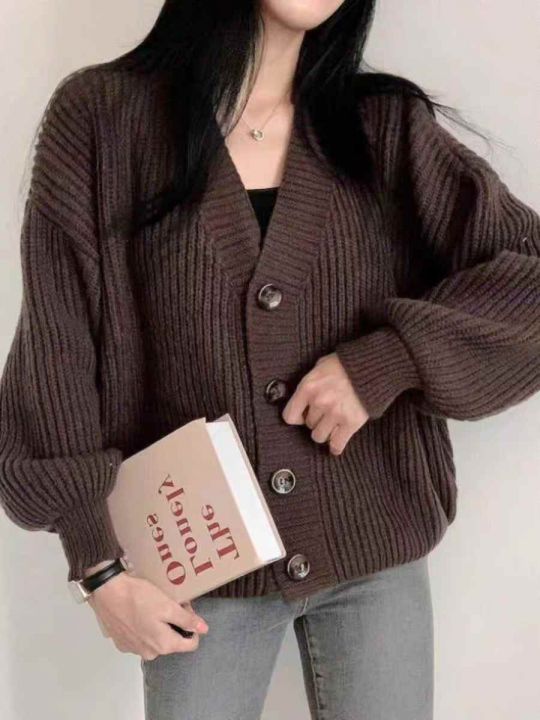 秋冬新款宽松百搭韩系净版简约慵懒风粗针毛衣开衫,独...