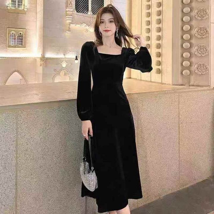 ️226件早秋冬法式小香风小礼服赫本风小黑裙金丝绒秋...