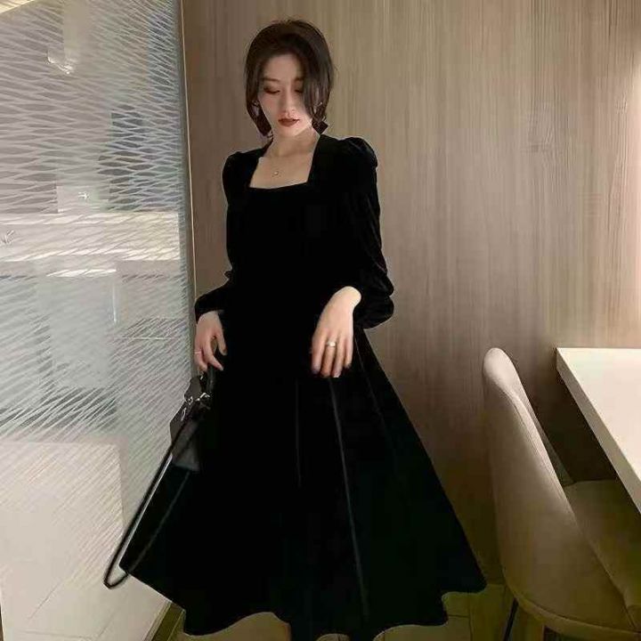 126件早秋冬法式小香风小礼服赫本风小黑裙金丝绒秋冬...