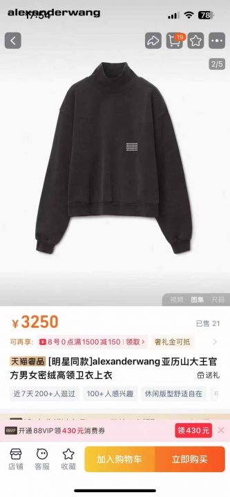 Alexander Wang高领男女卫衣S-XL码 200多件。 ...