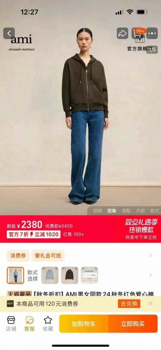 AMI艾米拉链外套卫衣400件,3色,S-2XL码。 货...