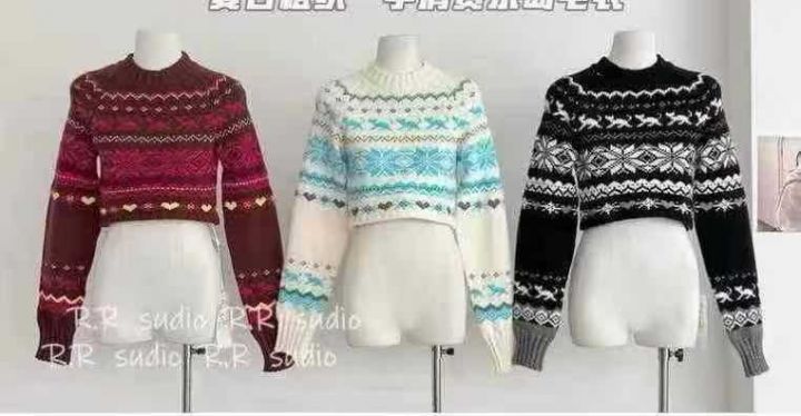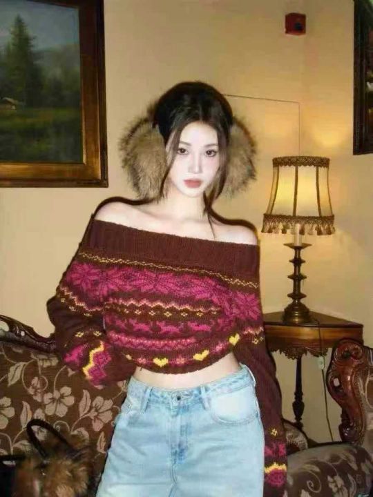 费尔岛毛衣慵懒辣妹风针织衫高级感纯欲上衣,独立包装,主色红色,60件,清6.8
