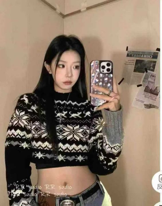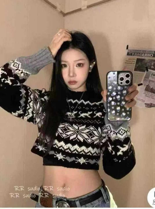 费尔岛毛衣慵懒辣妹风针织衫高级感纯欲上衣,独立包装...