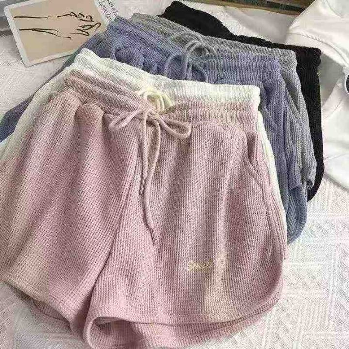 全清5.8不分货夏季女款华夫格运动短裤宽松显瘦阔腿休...