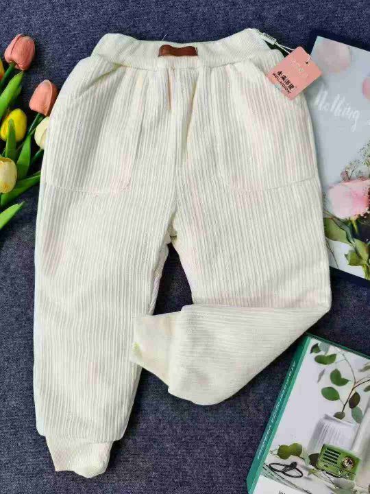 冬季保暖夹棉童裤,雪尼尔面料,松紧腰有口袋,825件,100-140码,白色为主,独立包装吊牌,全清5.8元,分货+0.5
