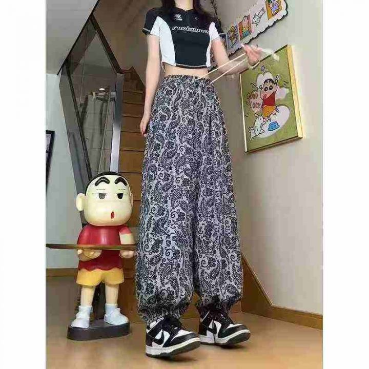 194条,腰果花满印冰丝裤子男女夏季薄款oversize阔腿灯笼裤束脚,独立包装,码数M-3XL,全清6.9元