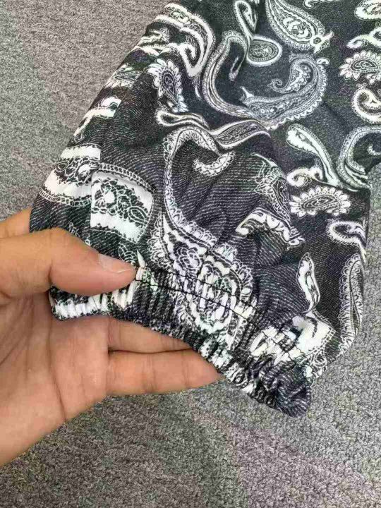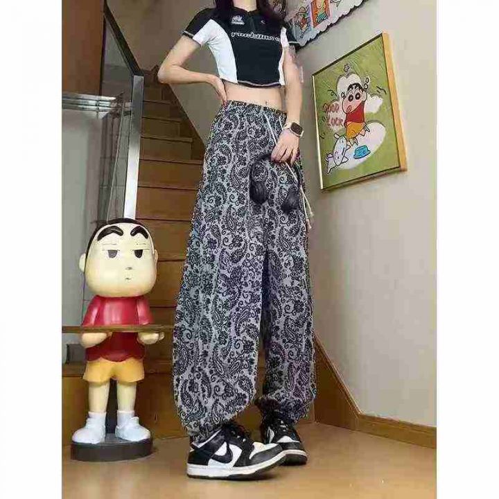 194条,腰果花满印冰丝裤子男女夏季薄款oversize阔腿...