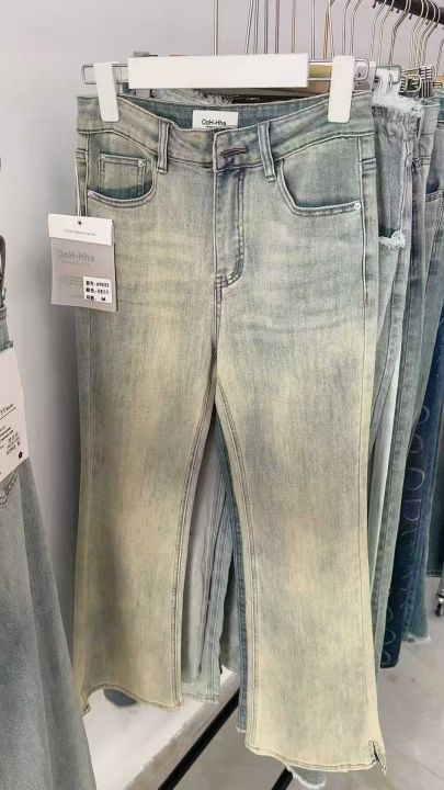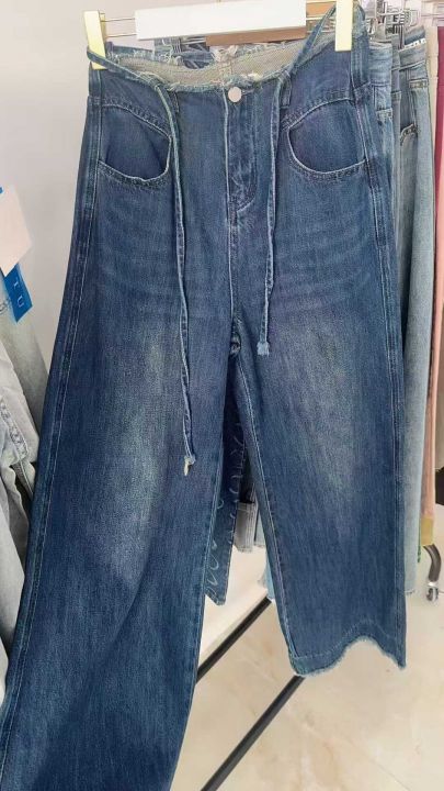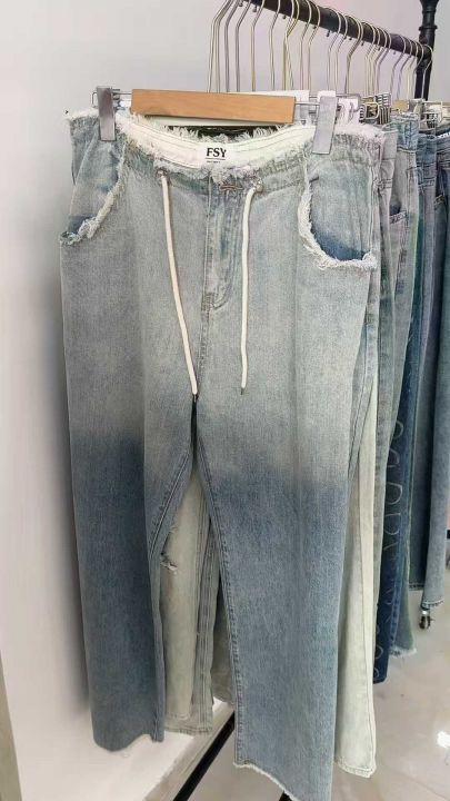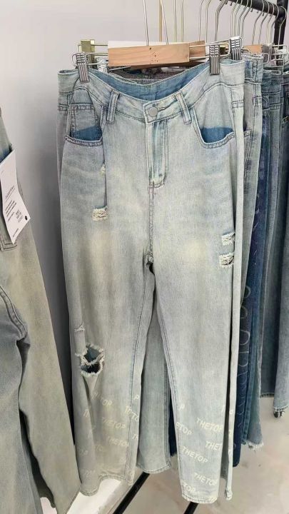 春秋新款复古网红破洞可调节直筒阔腿牛仔裤,独立包装带腰卡,码数S--2XL码...