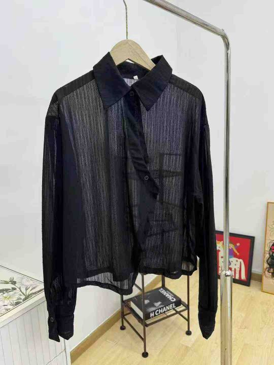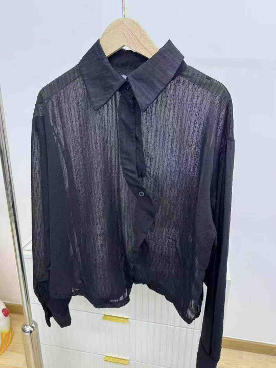 简单时尚微透格纹防晒罩衫宽松长袖衬衫·单款单色M-L独立包装320件全清7.8分货加一