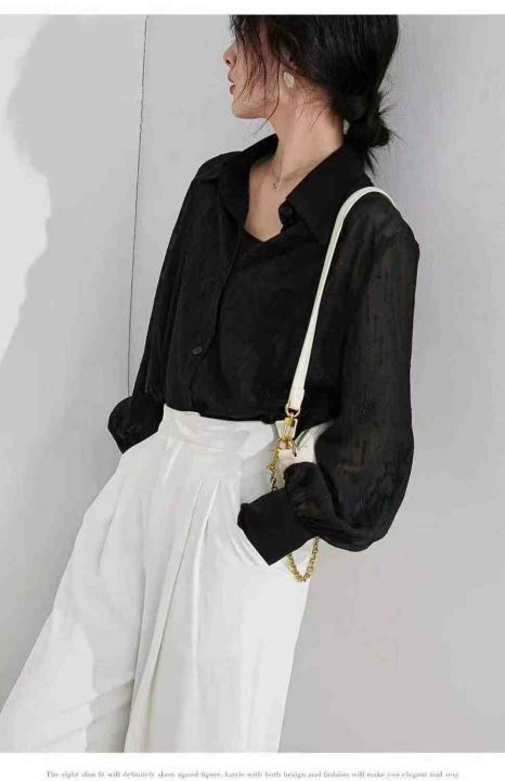 简单时尚微透格纹防晒罩衫宽松长袖衬衫·单款单色M-L...