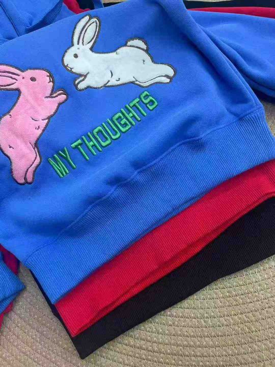 亏本清仓,不议价1869件高品质兔子刺绣连帽加绒儿童卫...