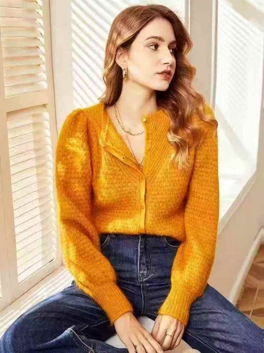 全清12.9,2025新款开衫毛衣女灯笼袖复古贵气质圆领钩花蓬松法式...