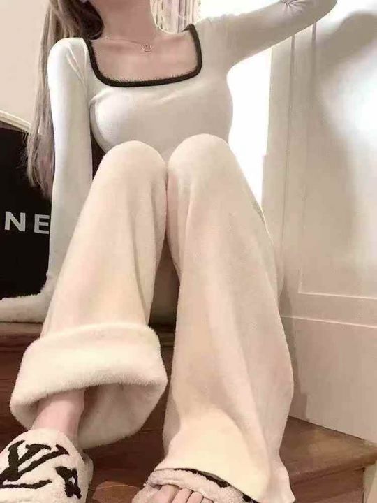 全清9.9,兔绒加绒针织裤女秋冬款直筒裤垂坠感阔腿裤,独立包装...