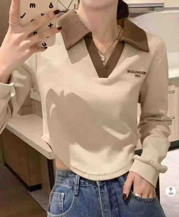 秋季新品撞色刺绣字母小清新百搭polo领针织套头毛衣,...
