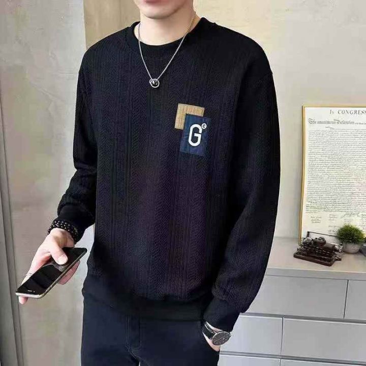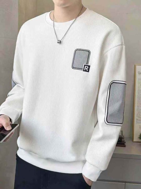 灯芯绒圆领卫衣男士秋冬季2025新款拼接上衣服男打底长...