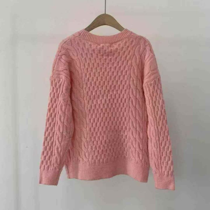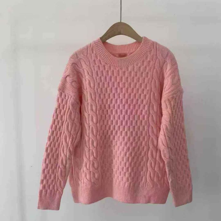 全清10.9,粉色厚款麻花毛衣针织衫圆领女款上...