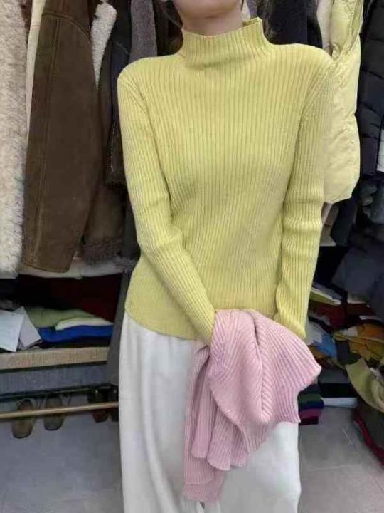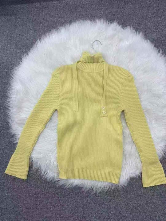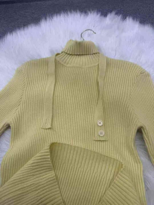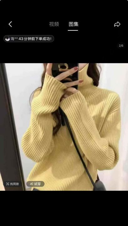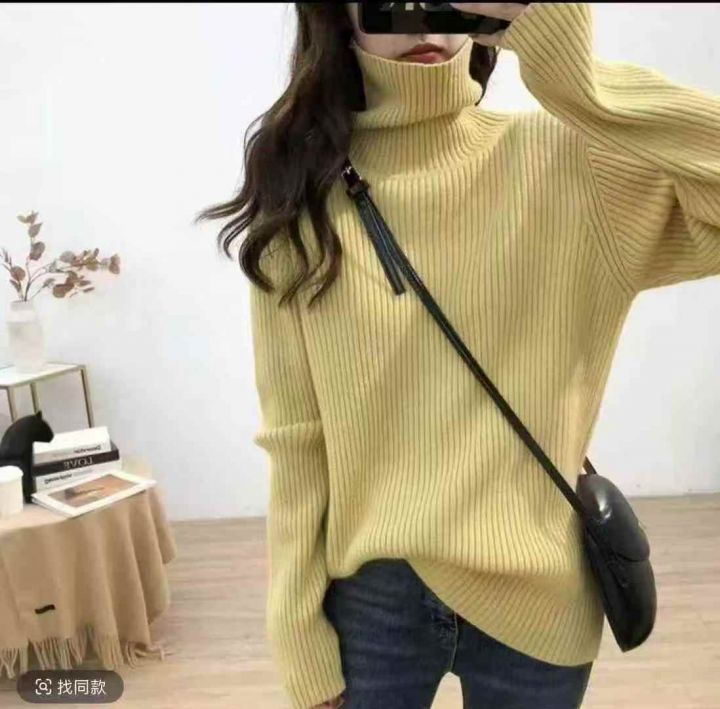 全清11.9,设计感别致流行加厚高领毛衣女秋冬外穿宽松慵懒风简约堆堆领坑条整款,单黄色色,独立包装吊牌,均码38件,不分货