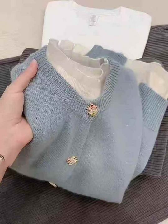 全清14.8,欧货重磅2025年春季新款女装秋冬高级感漂亮浅蓝色针织衫穿搭上衣,单款单色,均码32件