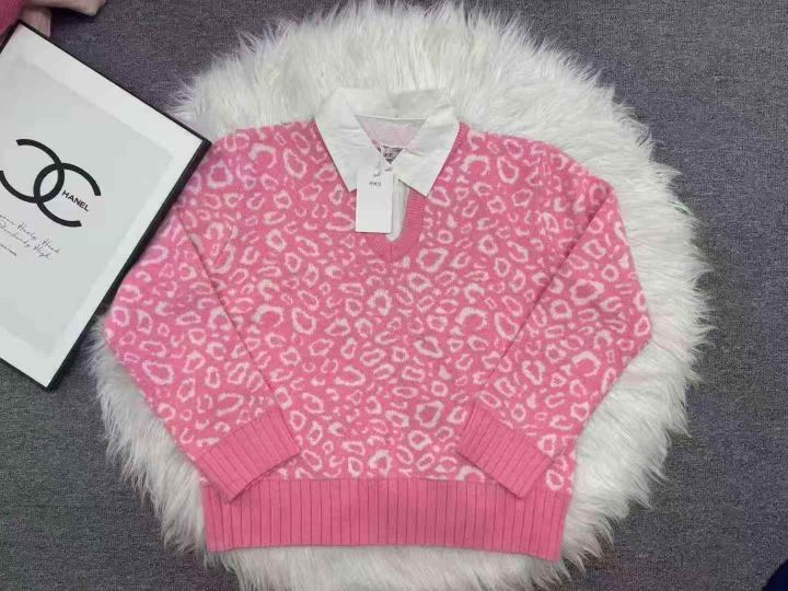 全清13.8,今年流行慵懒高级感超好看韩系奶呼呼软糯粉色豹纹印花针织Polo衫,单宽单色,均码40件