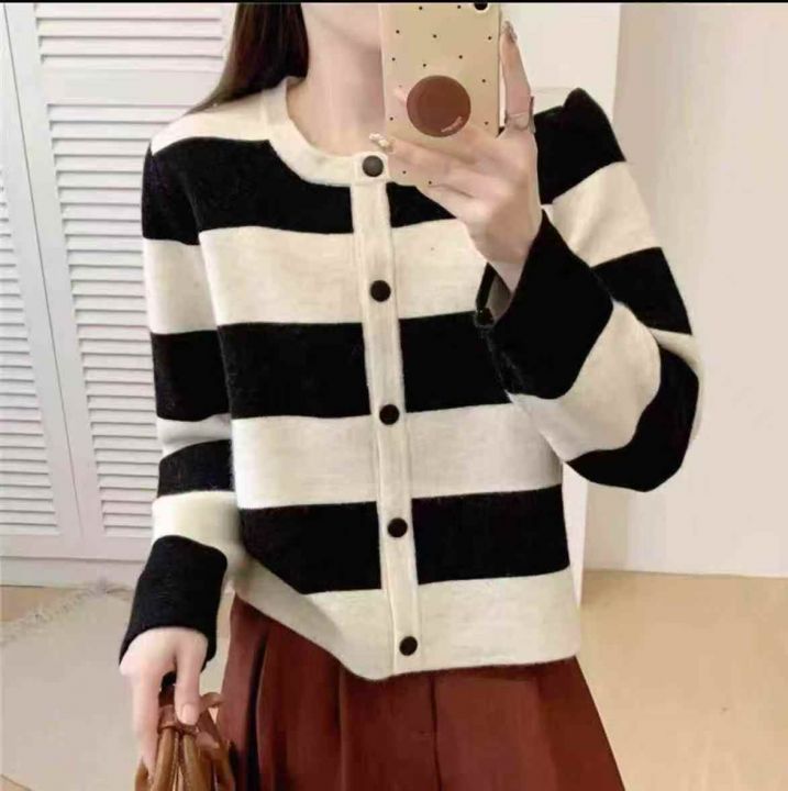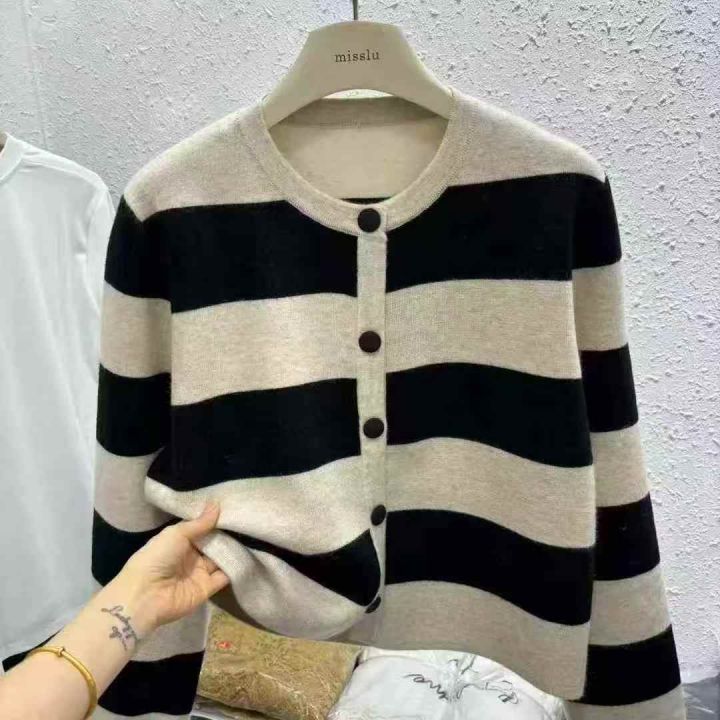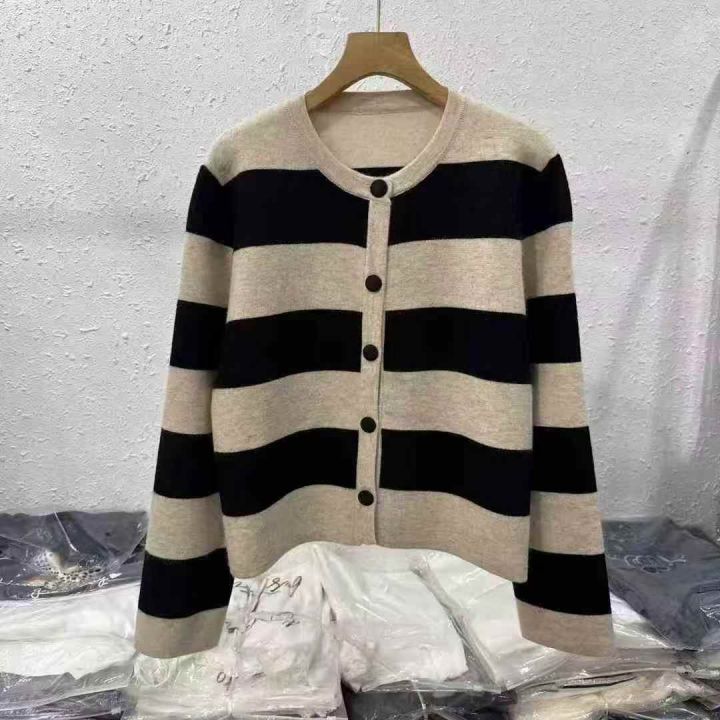 全清13.8,2025秋款圆领条纹宽松显瘦长袖单排扣针织开衫女百搭减龄毛衣外套,单款单色,均码57件,不分货