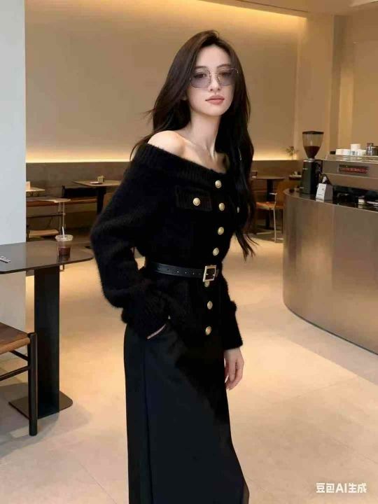 全清18.8,气质名媛黑色一字肩水貂绒毛衣女装2025秋冬独特超好看加厚轻熟掐腰毛衣,均码11件