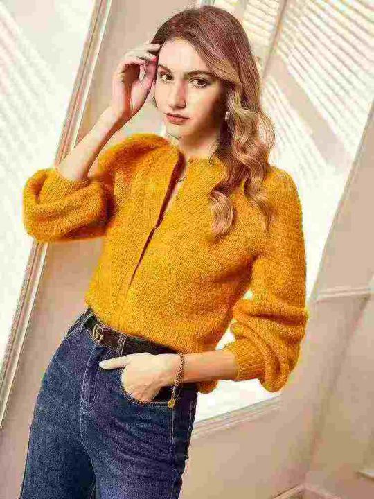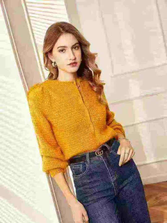 全清12.9,2025新款开衫毛衣女灯笼袖复古贵气质圆领钩花蓬松法式羊毛针织衫,均码34件,独立包装吊牌,不分货