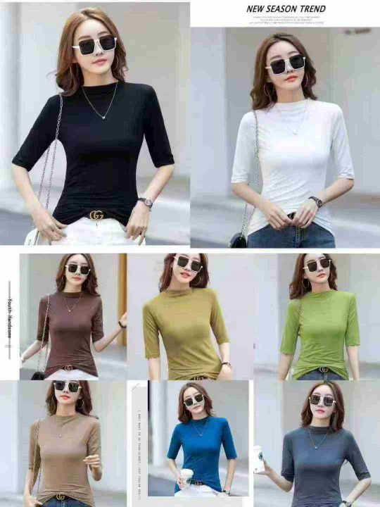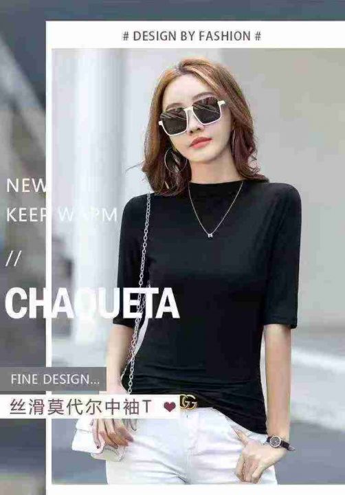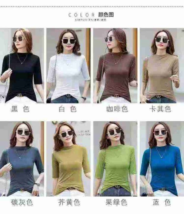 1750件中袖5分袖T恤女春夏季莫代尔打底衫正肩显瘦洋气纯棉上衣,整款多个颜色,独立包装带吊牌,码数S一3XL,全清9.8分货加1