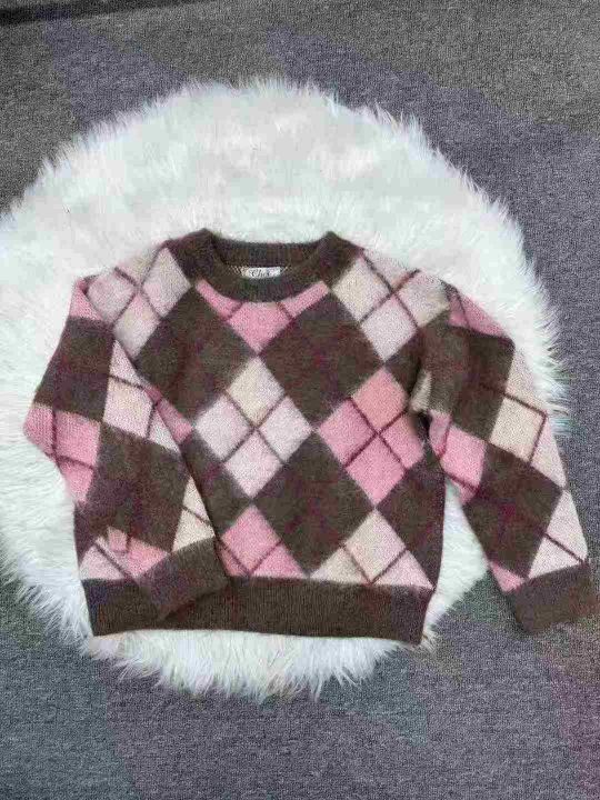 全清10.9,整款高级感软糯菱格粉色毛衣女秋冬宽松显瘦上衣,独立包装吊牌,均码51件,不分货