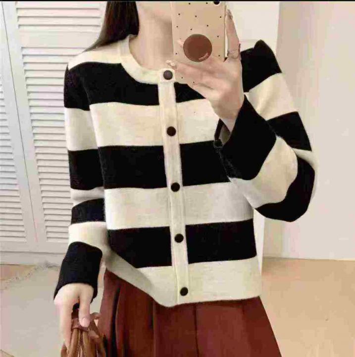 全清13.8,2025秋款圆领条纹宽松显瘦长袖单排扣针织开衫女百搭减龄毛衣外套,单款单色,均码57件,不分货