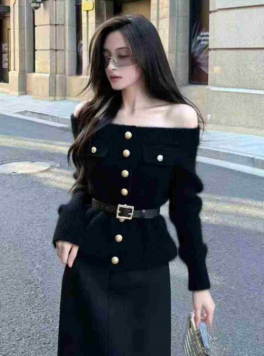 全清18.8,气质名媛黑色一字肩水貂绒毛衣女装2025秋冬独特超好看加厚轻熟掐腰毛衣,均码11件