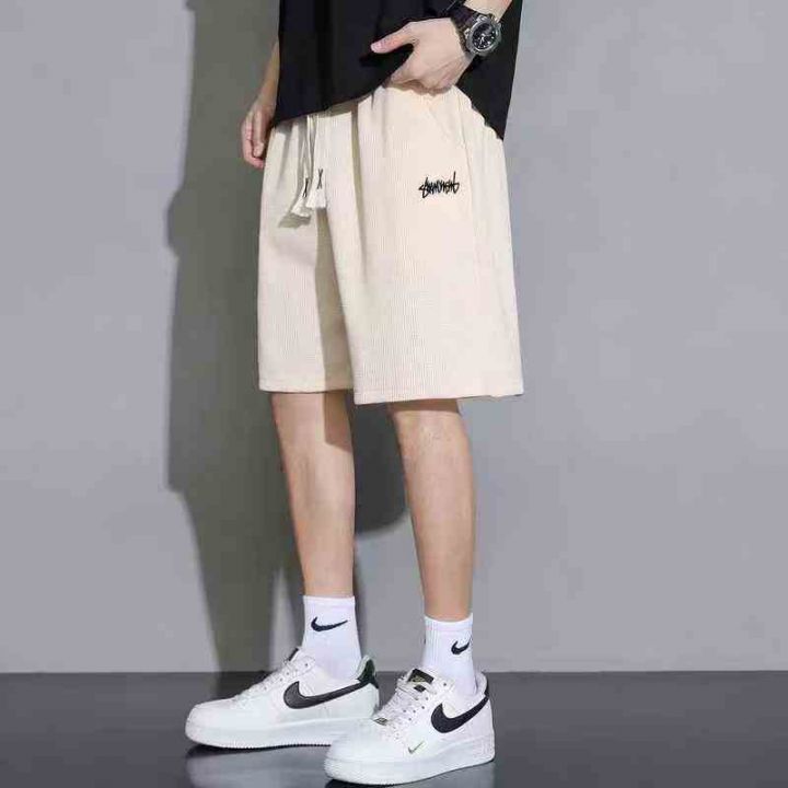 100条华夫格男士短裤潮牌宽松直筒休闲潮流运动男款五分裤,刺绣标,面料柔...
