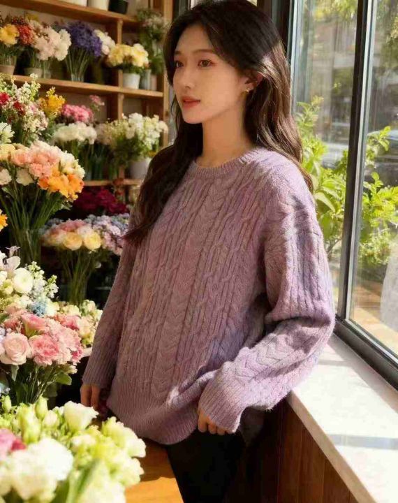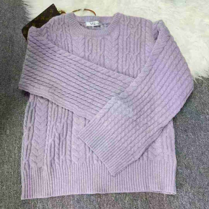 全清10.8 韩系温柔软糯紫色麻花毛衣女秋冬高级感慵懒风宽松圆领套头针织衫 单款单色,均码30件,不分货。