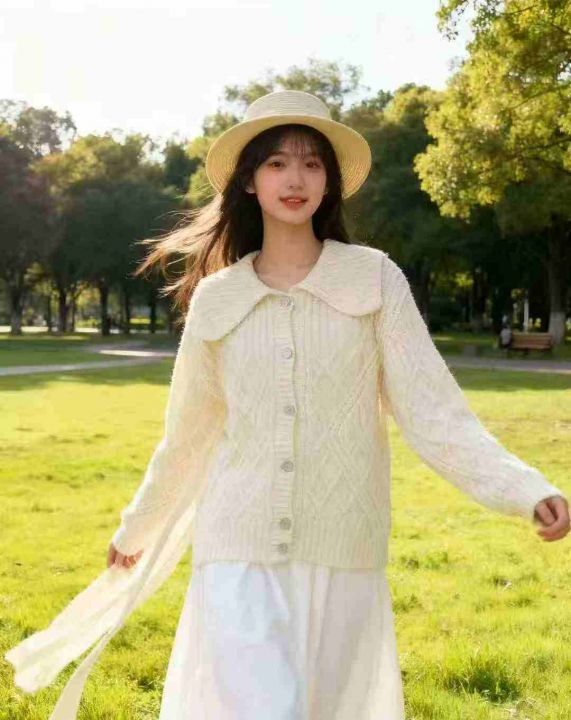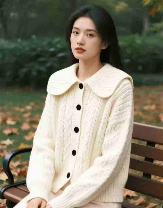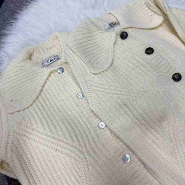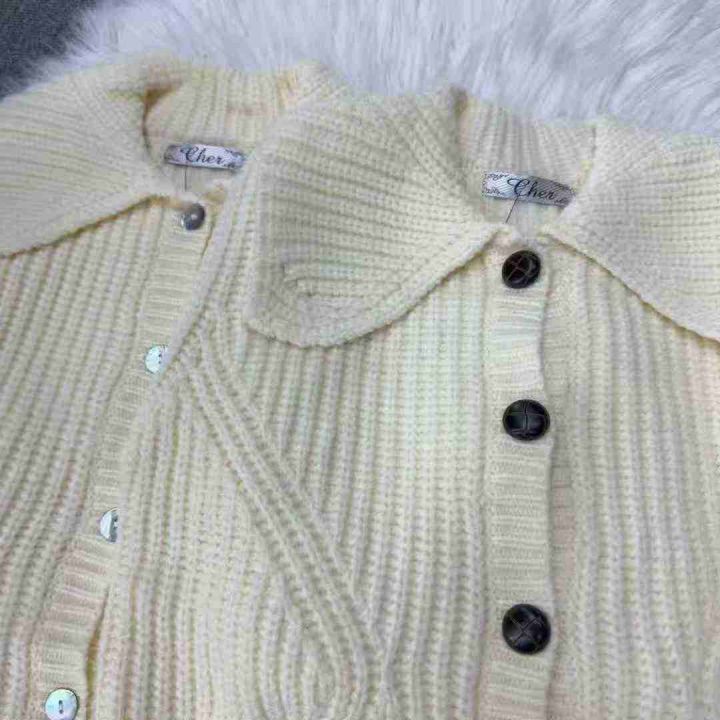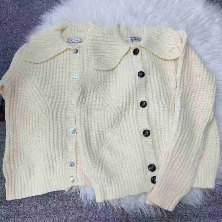 2025年冬装娃娃领小香风设计感小众奶fufu软糯针织开衫毛衣外套女,单色两款扣子不同,均码30件,不分货。