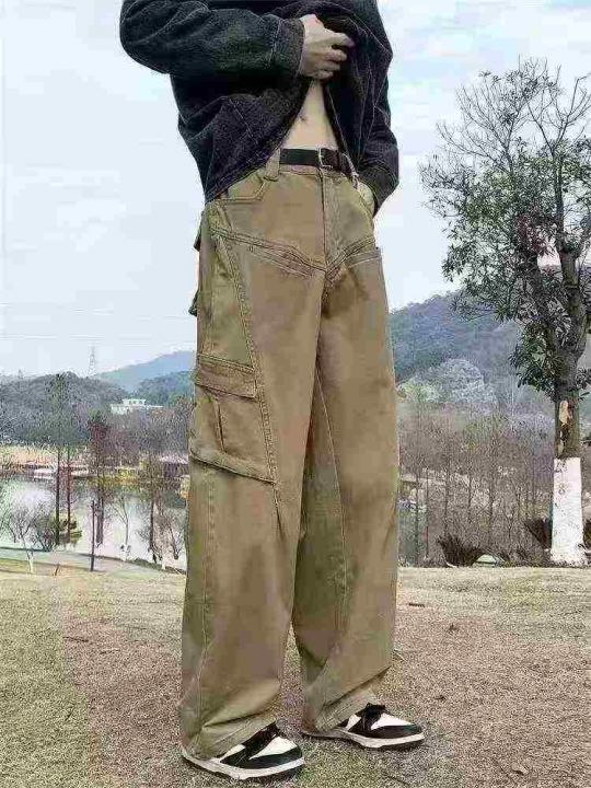 美式复古水洗棉阔腿工装伐木裤男女潮牌直筒宽松休闲裤子1500件,独立拉链袋...