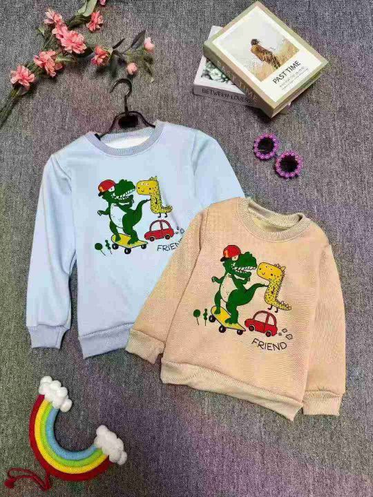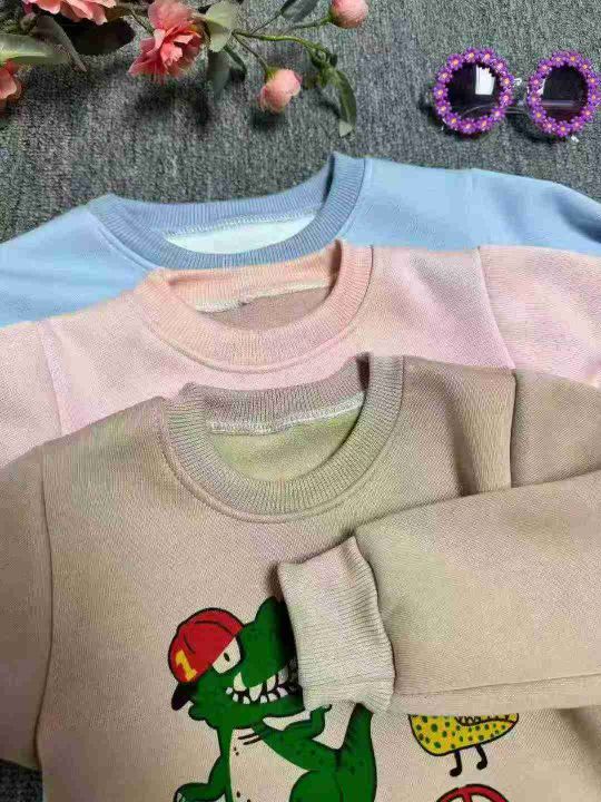 2000件左右秋冬男女童新款加绒保暖一体绒运动印花圆领卫衣。可穿3~8岁左右。一包4件。整款,面料厚实。亏本清。6.9秒杀