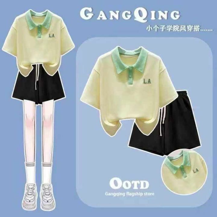 323件,夏季纯棉polo领女t恤短袖宽松翻领学院新款撞色...