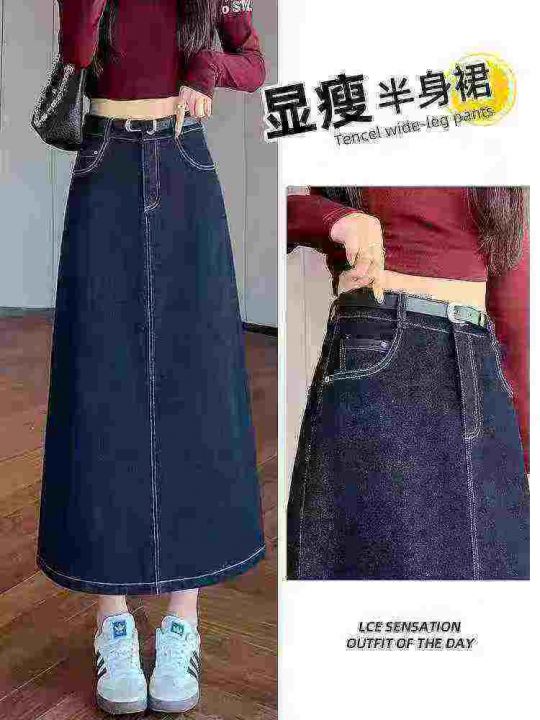 秋季新品洗水棉开叉双拼色牛仔半身长裙,独立包装带腰...