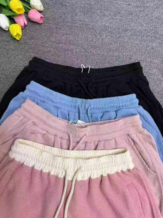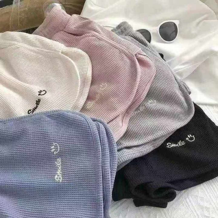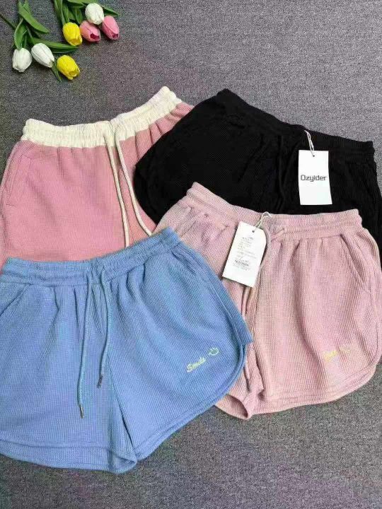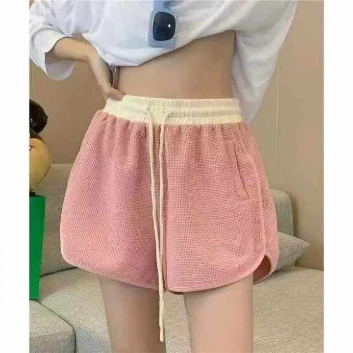 夏季女款华夫格运动短裤宽松显瘦阔腿休闲高腰辣妹热裤,独立包装,100条,码数SML