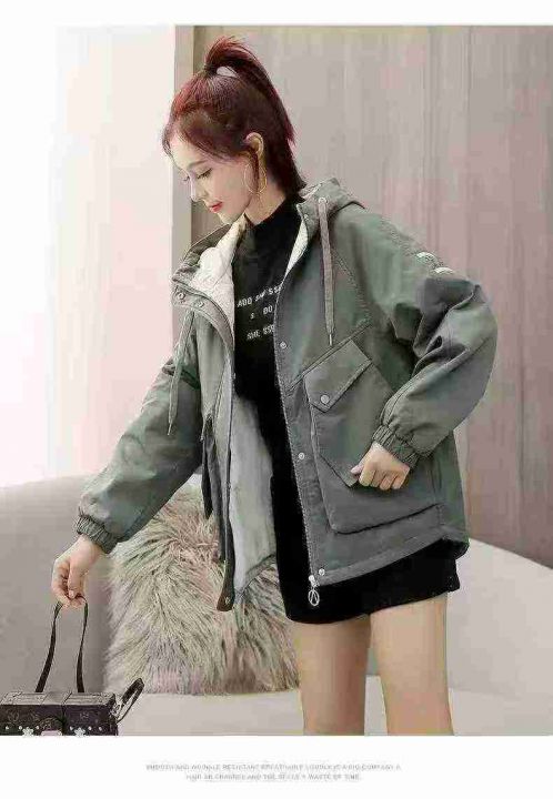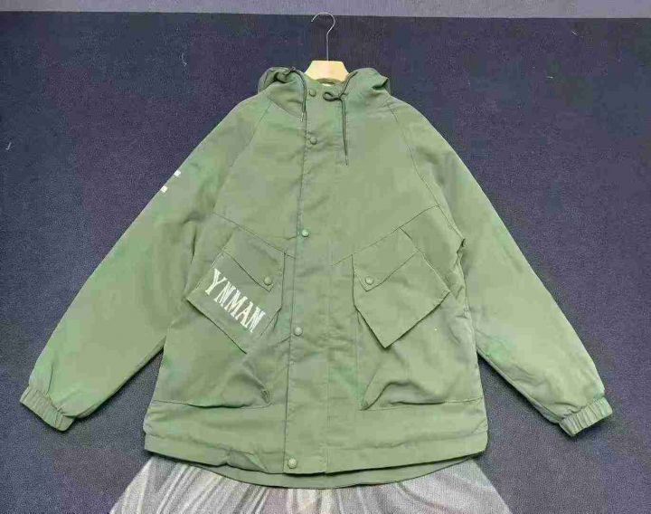 天猫在售款500件左右秋冬款加绒加厚韩版大码潮牌工装连帽外套,内里加超厚羊羔绒,单款单色,M-3XL,独立包装