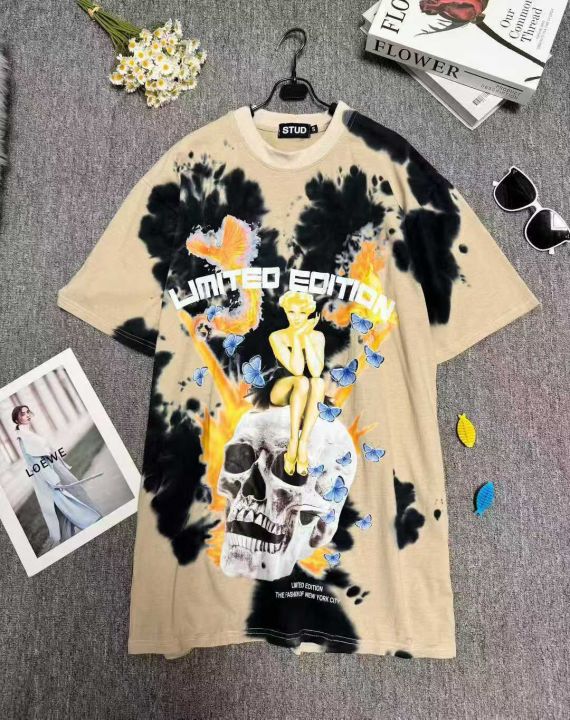 高街闪电骷髅裸洗水做旧复古宽松情侣短袖纯棉t恤,领口有包边,品质好有独立包装,数量380件左右,S-XL,全清5.8,分货+1