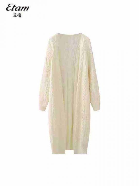 全清16.8,艾格纯色麻花中长款毛衣外套女秋...