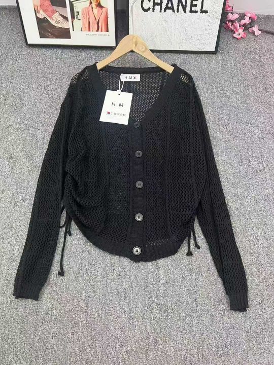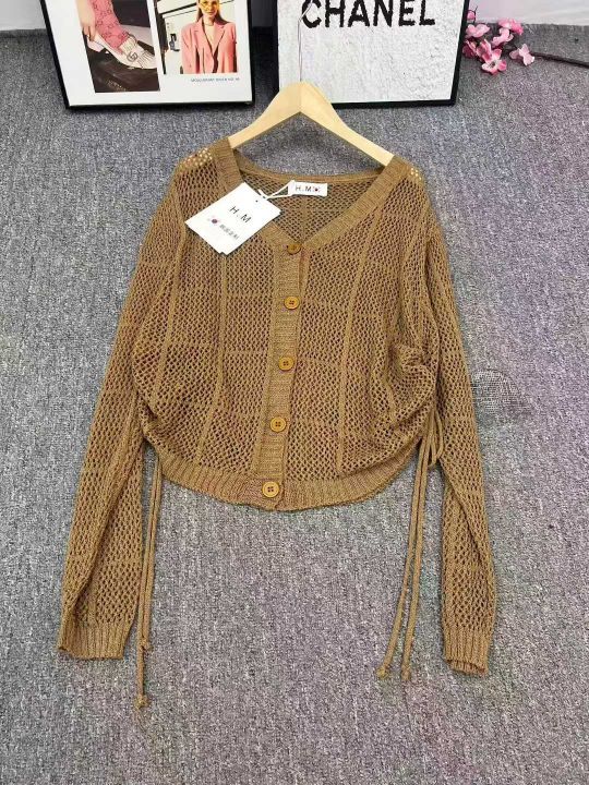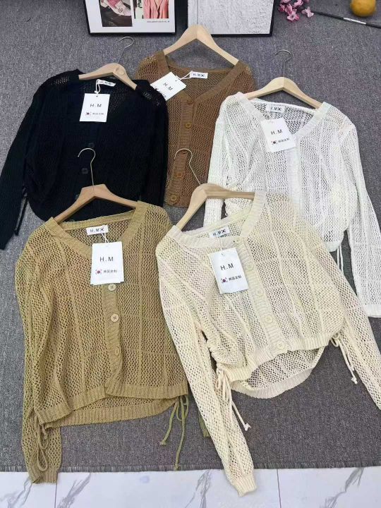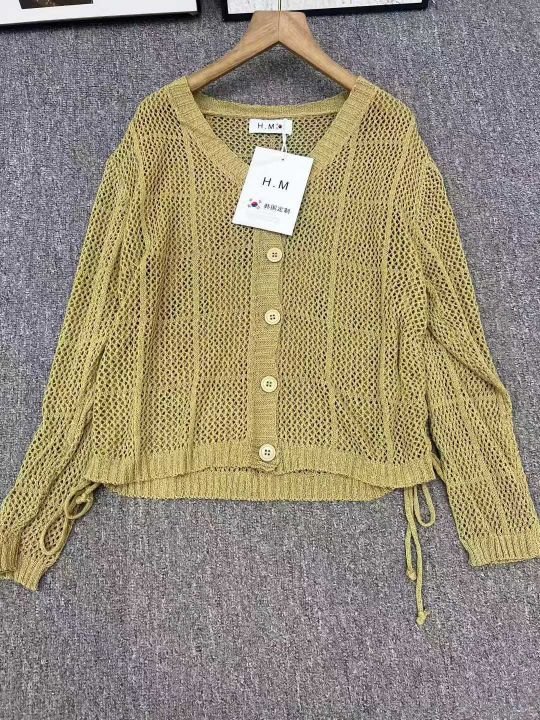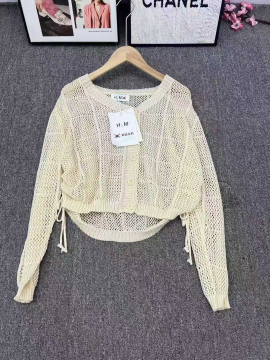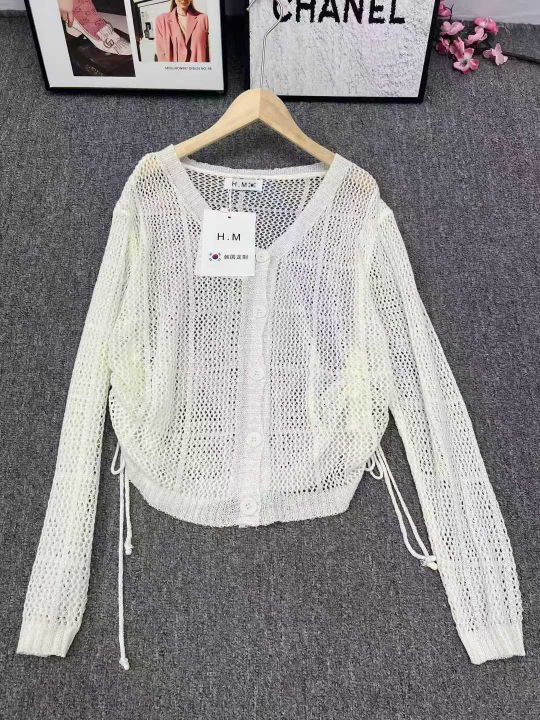 1263件早秋新款韩国定制两侧抽绳镂空女款针织衫,单款5色,均码,独立包装带吊牌!实体店批发首选!