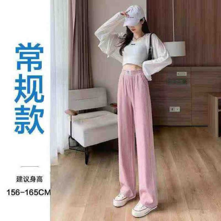 窄版冰丝裤子女夏季新款高腰垂感宽松显高显瘦休闲直筒拖地阔腿裤